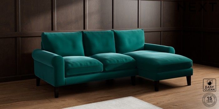 6.12.1 Buy Palermo Relaxed Sit Medium Sofa Chaise - Right Hand Plush Velvet Easy Clean Juniper Green Tapered - Dark from the Next UK online shop Click here to use our accessible website