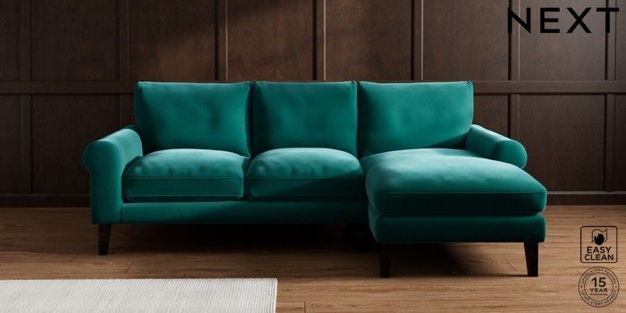 7.0.3 Buy Palermo Relaxed Sit Medium Sofa Chaise - Right Hand Plush Velvet Easy Clean Juniper Green Tapered - Dark from the Next UK online shop Click here to use our accessible website