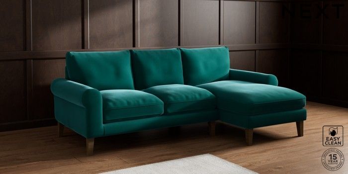 6.12.1 Buy Palermo Relaxed Sit Medium Sofa Chaise - Right Hand Plush Velvet Easy Clean Juniper Green Tapered - Mid from the Next UK online shop Click here to use our accessible website