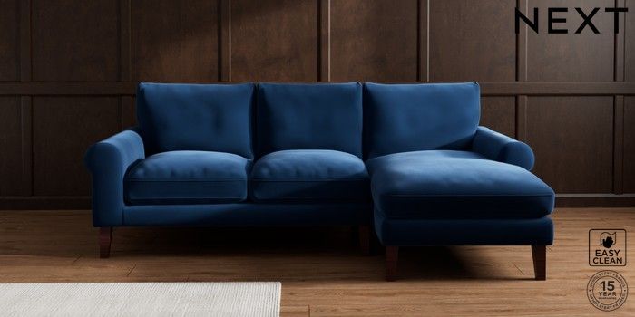 7.0.3 Buy Palermo Relaxed Sit Medium Sofa Chaise - Right Hand Plush Velvet Easy Clean Navy Blue Tapered - Dark Brown from the Next UK online shop Click here to use our accessible website