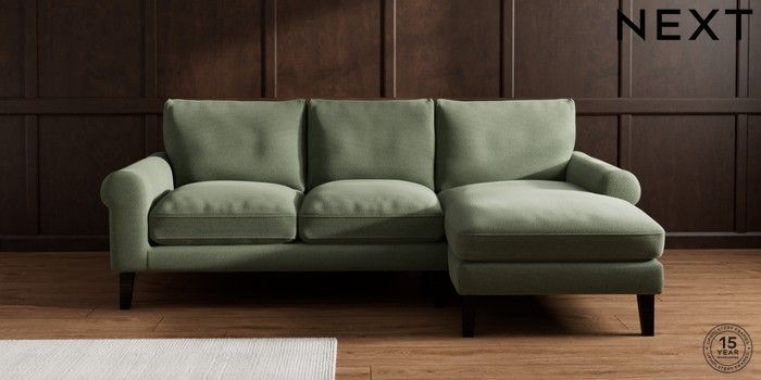7.0.3 Buy Palermo Relaxed Sit Medium Sofa Chaise - Right Hand Relaxed Linen Look Dark Green Tapered - Dark from the Next UK online shop Click here to use our accessible website