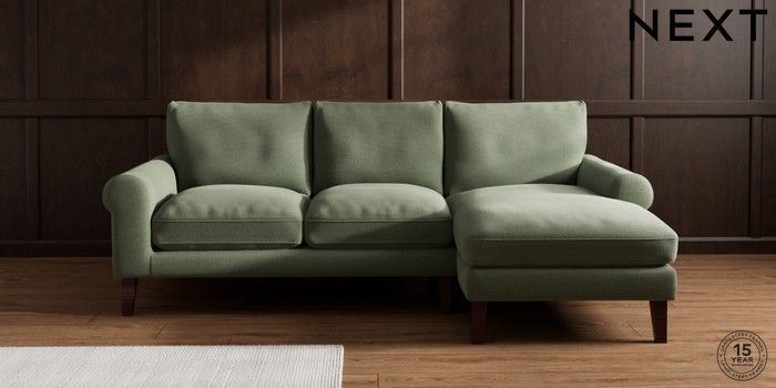 7.0.3 Buy Palermo Relaxed Sit Medium Sofa Chaise - Right Hand Relaxed Linen Look Dark Green Tapered - Dark Brown from the Next UK online shop Click here to use our accessible website
