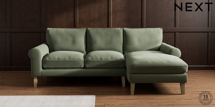 7.0.3 Buy Palermo Relaxed Sit Medium Sofa Chaise - Right Hand Relaxed Linen Look Dark Green Tapered - Light from the Next UK online shop Click here to use our accessible website