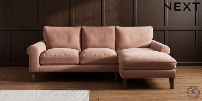 7.0.3 Buy Palermo Relaxed Sit Medium Sofa Chaise - Right Hand Relaxed Linen Look Light Rust Brown Tapered - Mid from the Next UK online shop Click here to use our accessible website