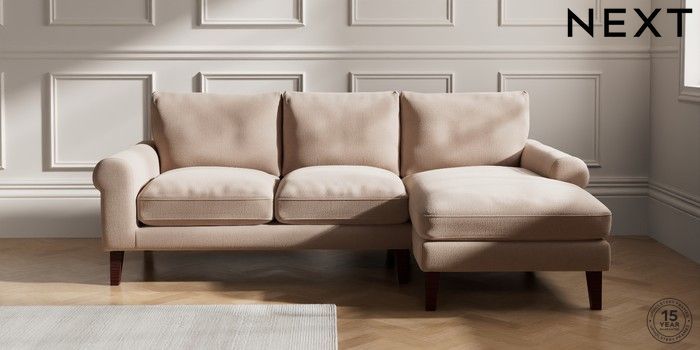 7.0.3 Buy Palermo Relaxed Sit Medium Sofa Chaise - Right Hand Relaxed Linen Look Mid Natural Tapered - Dark Brown from the Next UK online shop Click here to use our accessible website