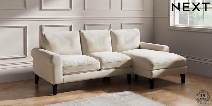 6.12.1 Buy Palermo Relaxed Sit Medium Sofa Chaise - Right Hand Relaxed Linen Look Oyster Tapered - Dark from the Next UK online shop Click here to use our accessible website