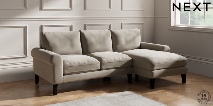 6.12.1 Buy Palermo Relaxed Sit Medium Sofa Chaise - Right Hand Ripple Chenille Light Natural Tapered - Dark from the Next UK online shop Click here to use our accessible website