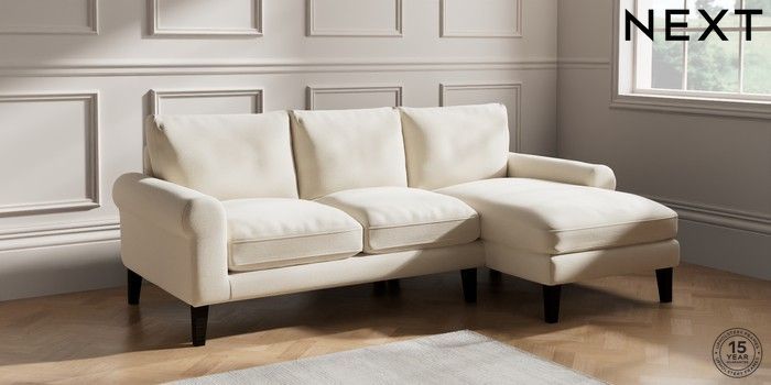 6.12.1 Buy Palermo Relaxed Sit Medium Sofa Chaise - Right Hand Ripple Chenille Oyster Tapered - Dark from the Next UK online shop Click here to use our accessible website