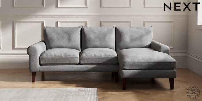 7.0.3 Buy Palermo Relaxed Sit Medium Sofa Chaise - Right Hand Studio Chenille Mid Grey Tapered - Dark Brown from the Next UK online shop Click here to use our accessible website