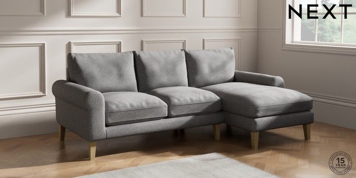 6.12.1 Buy Palermo Relaxed Sit Medium Sofa Chaise - Right Hand Studio Chenille Mid Grey Tapered - Light from the Next UK online shop Click here to use our accessible website