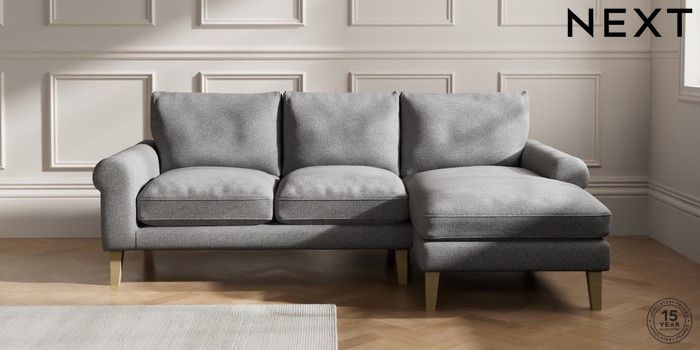 7.0.3 Buy Palermo Relaxed Sit Medium Sofa Chaise - Right Hand Studio Chenille Mid Grey Tapered - Light from the Next UK online shop Click here to use our accessible website