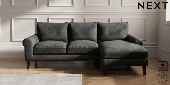 7.0.3 Buy Palermo Relaxed Sit Medium Sofa Chaise - Right Hand Tweedy Blend Easy Clean Charcoal Grey Tapered - Dark Brown from the Next UK online shop Click here to use our accessible website