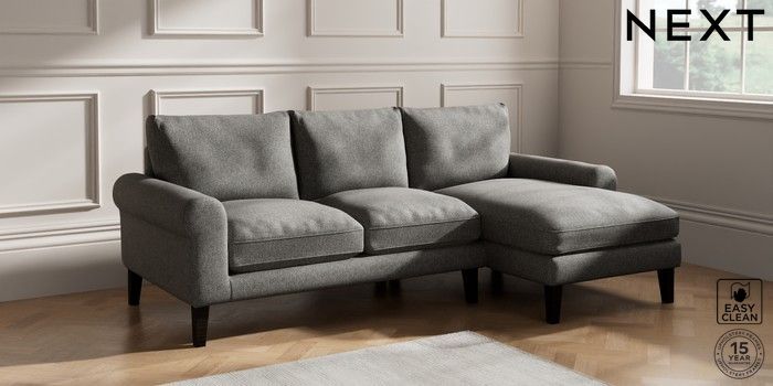 6.12.1 Buy Palermo Relaxed Sit Medium Sofa Chaise - Right Hand Tweedy Blend Easy Clean Dark Grey Tapered - Dark from the Next UK online shop Click here to use our accessible website