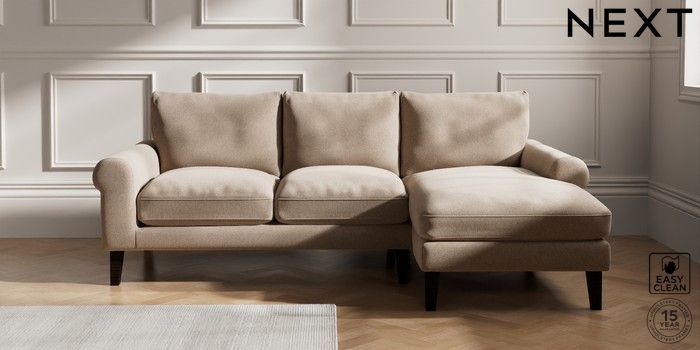 6.12.1 Buy Palermo Relaxed Sit Medium Sofa Chaise - Right Hand Tweedy Blend Easy Clean Light Dove Natural Tapered - Dark from the Next UK online shop Click here to use our accessible website