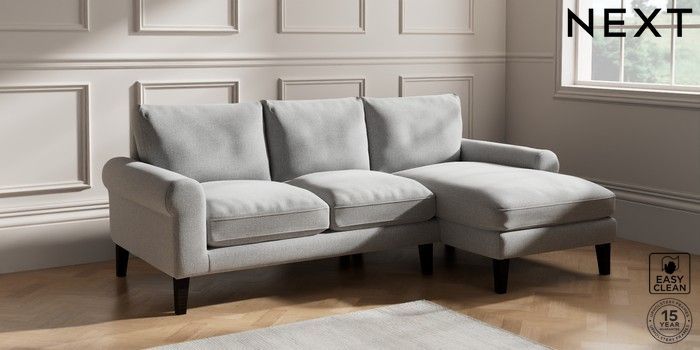 6.12.1 Buy Palermo Relaxed Sit Medium Sofa Chaise - Right Hand Tweedy Blend Easy Clean Light Silver Grey Tapered - Dark from the Next UK online shop Click here to use our accessible website