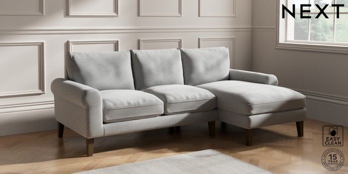 6.12.1 Buy Palermo Relaxed Sit Medium Sofa Chaise - Right Hand Tweedy Blend Easy Clean Light Silver Grey Tapered - Mid from the Next UK online shop Click here to use our accessible website