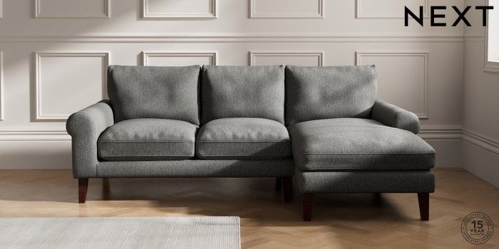 7.0.3 Buy Palermo Relaxed Sit Medium Sofa Chaise - Right Hand Tweedy Chenille Dark Grey Tapered - Dark Brown from the Next UK online shop Click here to use our accessible website