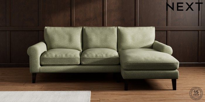 7.0.3 Buy Palermo Relaxed Sit Medium Sofa Chaise - Right Hand Tweedy Chenille Mid Moss Green Tapered - Dark from the Next UK online shop Click here to use our accessible website