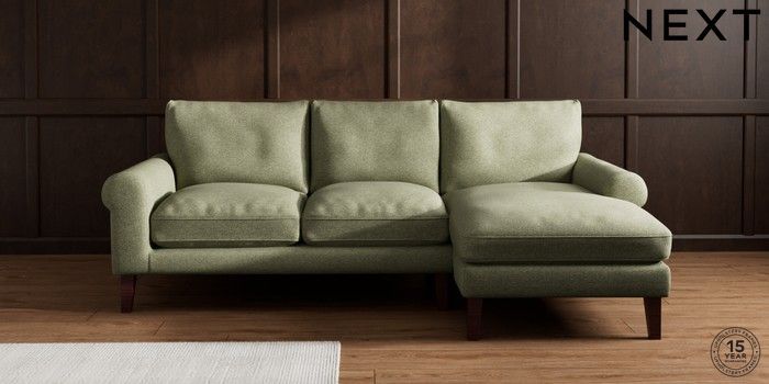 7.0.3 Buy Palermo Relaxed Sit Medium Sofa Chaise - Right Hand Tweedy Chenille Mid Moss Green Tapered - Dark Brown from the Next UK online shop Click here to use our accessible website