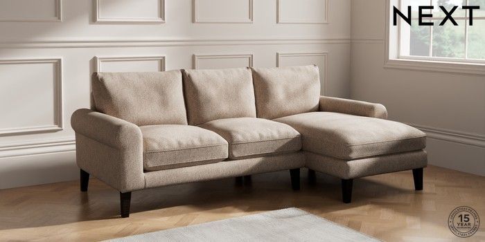 6.12.1 Buy Palermo Relaxed Sit Medium Sofa Chaise - Right Hand Tweedy Chenille Mid Natural Tapered - Dark from the Next UK online shop Click here to use our accessible website