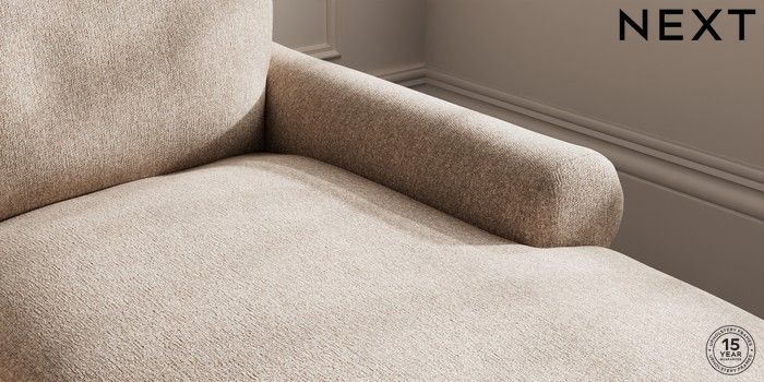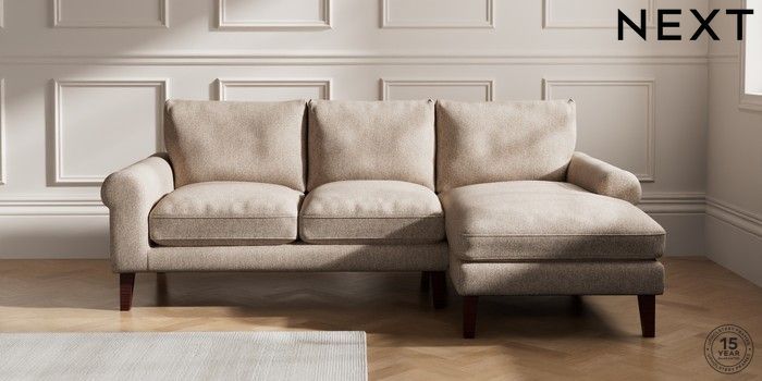 7.0.3 Buy Palermo Relaxed Sit Medium Sofa Chaise - Right Hand Tweedy Chenille Mid Natural Tapered - Dark Brown from the Next UK online shop Click here to use our accessible website
