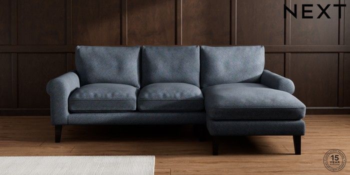 7.0.3 Buy Palermo Relaxed Sit Medium Sofa Chaise - Right Hand Tweedy Chenille Navy Blue Tapered - Dark from the Next UK online shop Click here to use our accessible website