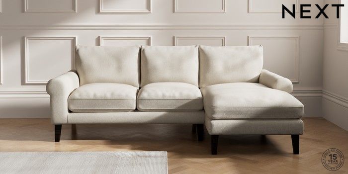 7.0.3 Buy Palermo Relaxed Sit Medium Sofa Chaise - Right Hand Tweedy Chenille Oyster Tapered - Dark from the Next UK online shop Click here to use our accessible website