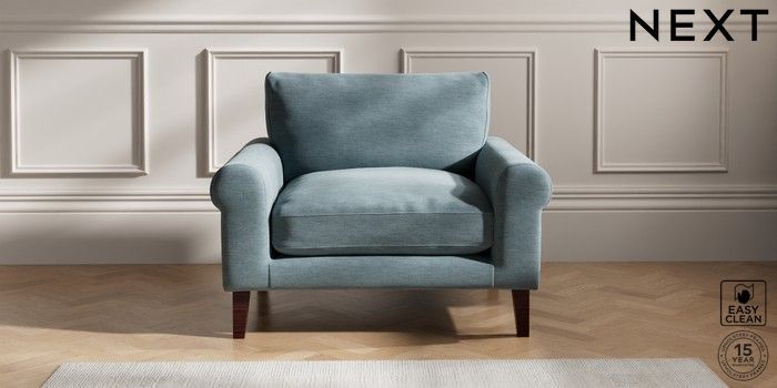 6.12.1 Buy Palermo Relaxed Sit Snuggle Fine Chenille Easy Clean Mid Blue Tapered - Dark Brown from the Next UK online shop Click here to use our accessible website
