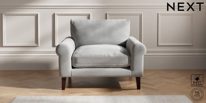 6.12.1 Buy Palermo Relaxed Sit Snuggle Tweedy Blend Easy Clean Light Silver Grey Tapered - Dark Brown from the Next UK online shop Click here to use our accessible website