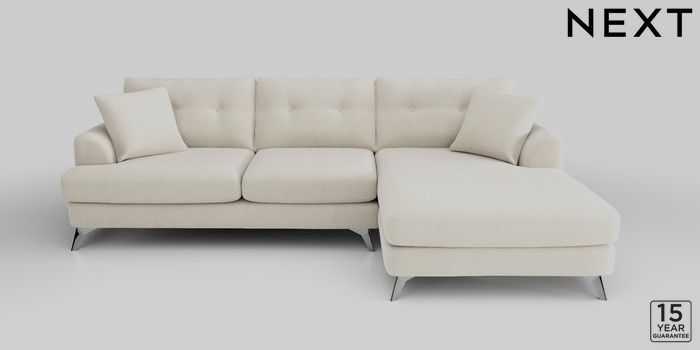 6.10.9 Buy Parker Buttoned Back Large Sofa Chaise - Right Hand Relaxed Linen Look Oyster High Metal - Chrome from the Next UK online shop Click here to use our accessible website