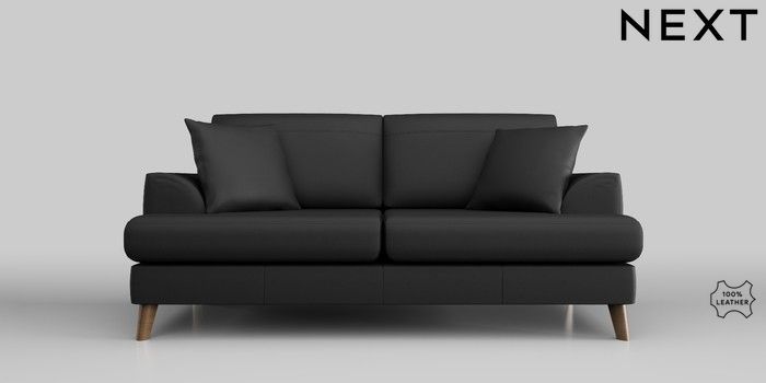 6.12.13 Buy Parker Leather 3 Seater Small Sofa Columbia Black Low Retro Tapered - Mid from the Next UK online shop Click here to use our accessible website