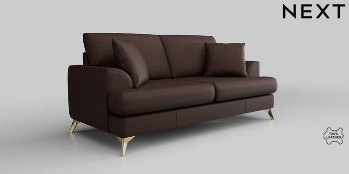 6.12.1 Buy Parker Leather 3 Seater Small Sofa Rustic Leather Dark Brown High Metal - Brass from the Next UK online shop Click here to use our accessible website