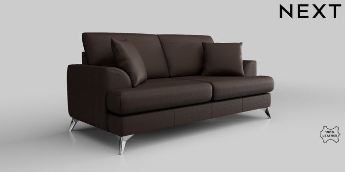 6.12.1 Buy Parker Leather 3 Seater Small Sofa Turin Leather Dark Brown High Metal - Chrome from the Next UK online shop Click here to use our accessible website