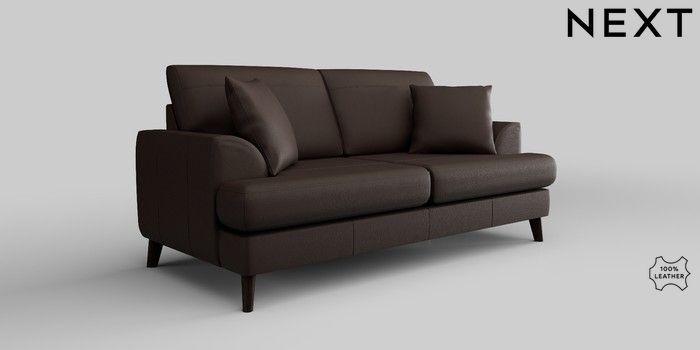 6.12.1 Buy Parker Leather 3 Seater Small Sofa Turin Leather Dark Brown Low Retro Tapered - Dark from the Next UK online shop Click here to use our accessible website