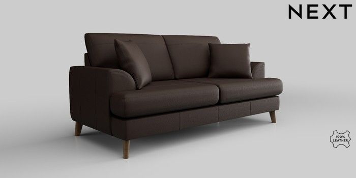 6.12.1 Buy Parker Leather 3 Seater Small Sofa Turin Leather Dark Brown Low Retro Tapered - Mid from the Next UK online shop Click here to use our accessible website