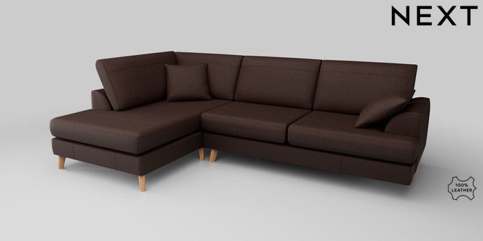 6.12.1 Buy Parker Leather Large Corner Chaise - Left Hand Rustic Leather Dark Brown Low Retro Tapered - Light from the Next UK online shop Click here to use our accessible website