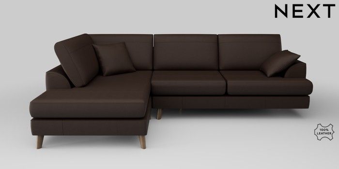7.0.3 Buy Parker Leather Large Corner Chaise - Left Hand Turin Leather Dark Brown Low Retro Tapered - Mid from the Next UK online shop Click here to use our accessible website