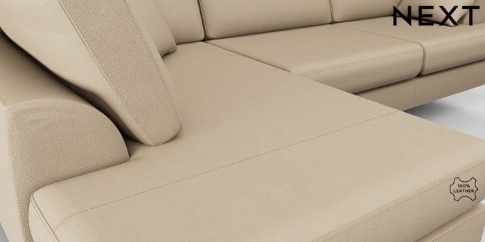 7.0.3 Buy Parker Leather Large Corner Chaise - Left Hand Turin Leather Light Natural High Metal - Chrome from the Next UK online shop Click here to use our accessible website