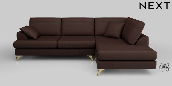 7.0.3 Buy Parker Leather Large Corner Chaise - Right Hand Rustic Leather Dark Brown High Metal - Brass from the Next UK online shop Click here to use our accessible website