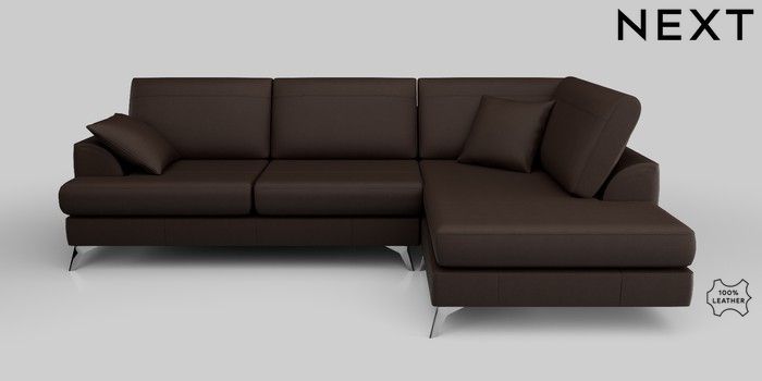 7.0.3 Buy Parker Leather Large Corner Chaise - Right Hand Turin Leather Dark Brown High Metal - Chrome from the Next UK online shop Click here to use our accessible website
