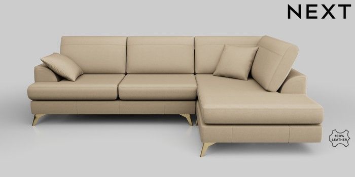 7.0.3 Buy Parker Leather Large Corner Chaise - Right Hand Turin Leather Light Natural High Metal - Brass from the Next UK online shop Click here to use our accessible website