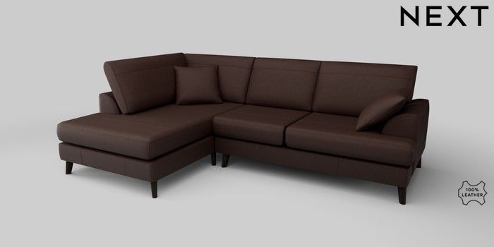 6.12.1 Buy Parker Leather Medium Corner Chaise - Left Hand Rustic Leather Dark Brown Low Retro Tapered - Dark from the Next UK online shop Click here to use our accessible website