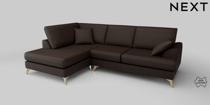 6.12.1 Buy Parker Leather Medium Corner Chaise - Left Hand Turin Leather Dark Brown High Metal - Brass from the Next UK online shop Click here to use our accessible website