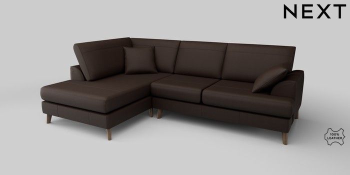 6.12.1 Buy Parker Leather Medium Corner Chaise - Left Hand Turin Leather Dark Brown Low Retro Tapered - Mid from the Next UK online shop Click here to use our accessible website