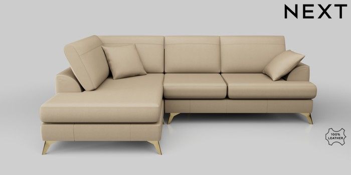 7.0.3 Buy Parker Leather Medium Corner Chaise - Left Hand Turin Leather Light Natural High Metal - Brass from the Next UK online shop Click here to use our accessible website