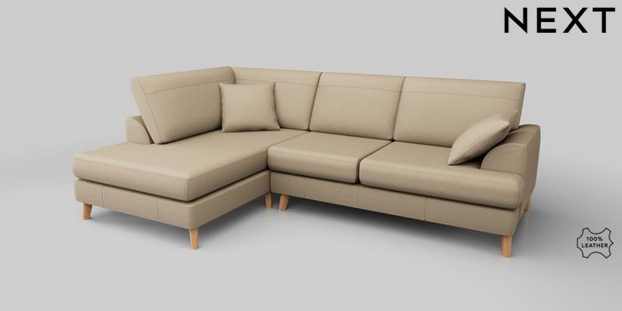 6.12.1 Buy Parker Leather Medium Corner Chaise - Left Hand Turin Leather Light Natural Low Retro Tapered - Light from the Next UK online shop Click here to use our accessible website