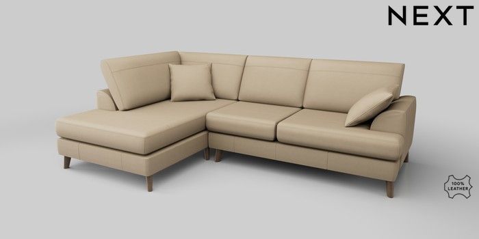 6.12.1 Buy Parker Leather Medium Corner Chaise - Left Hand Turin Leather Light Natural Low Retro Tapered - Mid from the Next UK online shop Click here to use our accessible website