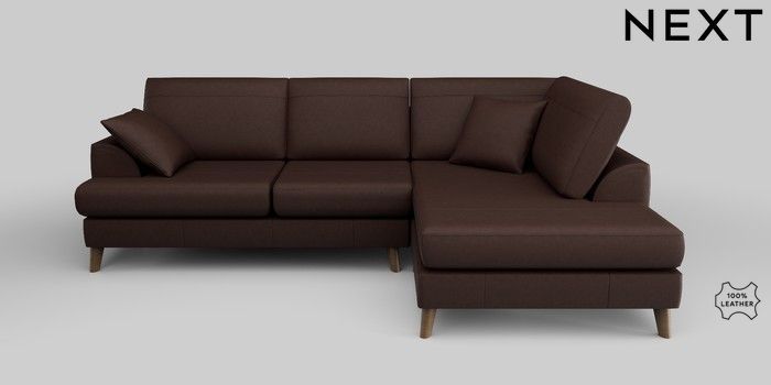 7.0.3 Buy Parker Leather Medium Corner Chaise - Right Hand Rustic Leather Dark Brown Low Retro Tapered - Mid from the Next UK online shop Click here to use our accessible website