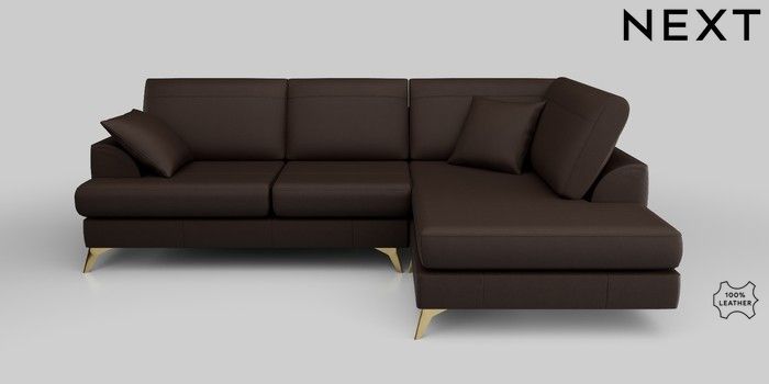 7.0.3 Buy Parker Leather Medium Corner Chaise - Right Hand Turin Leather Dark Brown High Metal - Brass from the Next UK online shop Click here to use our accessible website