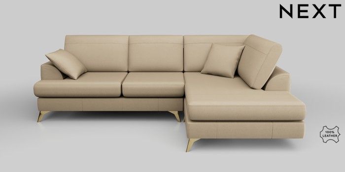 7.0.3 Buy Parker Leather Medium Corner Chaise - Right Hand Turin Leather Light Natural High Metal - Brass from the Next UK online shop Click here to use our accessible website